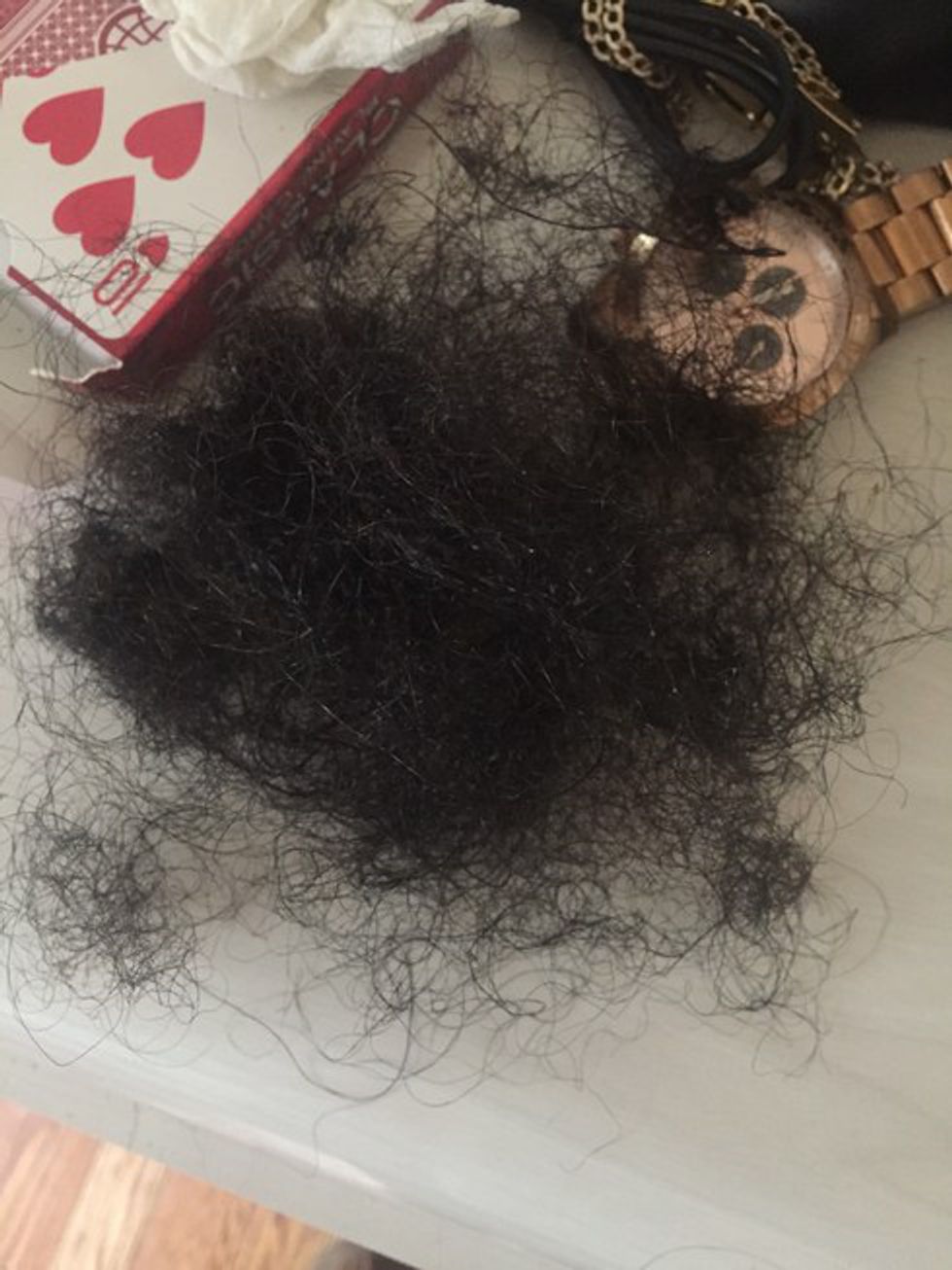 Rasheeda’s hair has been natural all her life, with the exception of an occasional wash and blow-out with limited heat damage. Rasheeda claims that while washing her hair for the first time since what she thought was a wash and blow-out, using the same hair products that she has been using for months, she noticed the smell of relaxer chemicals. Afterwards, she continued to detangle her hair with her finger and found out that she was losing a significant amount of hair. The pictures below were all taken on the same day.