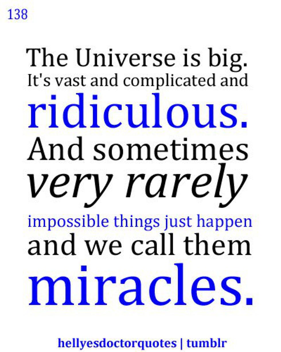 2. I love this quote. This is one of my personal favorites. There are so many variables in life. So many things can go right and wrong, and this quote acknowledges that and also gives us leave to believe in the magic of miracles, wonderful moments where the stars seem to have aligned just for us.