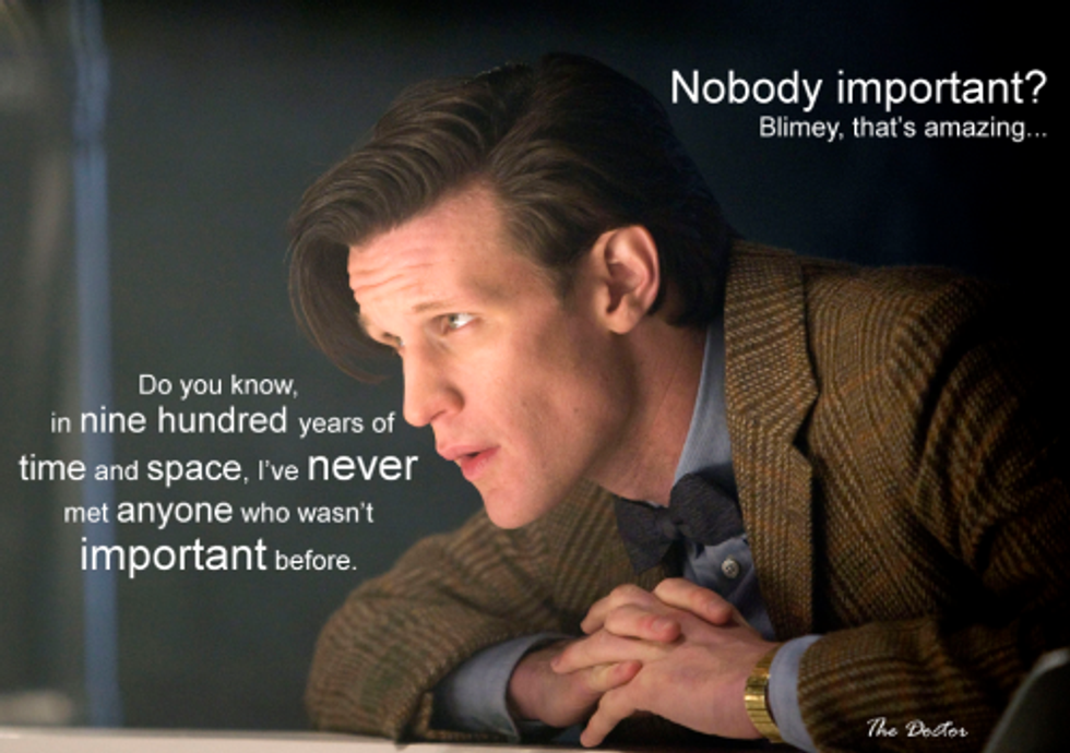 There are hundreds of beautiful, wise, uplifting, funny and inspiring quotes from this show. I certainly haven't remotely come close to listing all of them; however, I do know that quotes help me get through, and I am more inclined to listen to the message when they come from things I enjoy, and "Doctor Who" is a large part of that.