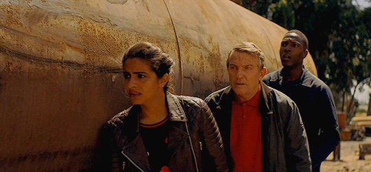 There's also far less of a clear relationship between the companions and the Doctor this series. There are so many people in the TARDIS that we and the Doctor get a quarter of the time with each companion. The crowded TARDIS combined with the fact that there isn't a lot of conflict between the Doctor and her companions until the end of the series leaves the Doctor's relationship with each of them in a sort of generally friendly place, without the relationship development we saw from Doctor Who when there was only one companion. Instead, they all follow her blindly, without argument or hesitation. They follow her orders and don't argue when she does something she shouldn't have or where previous companions would have challenged her.