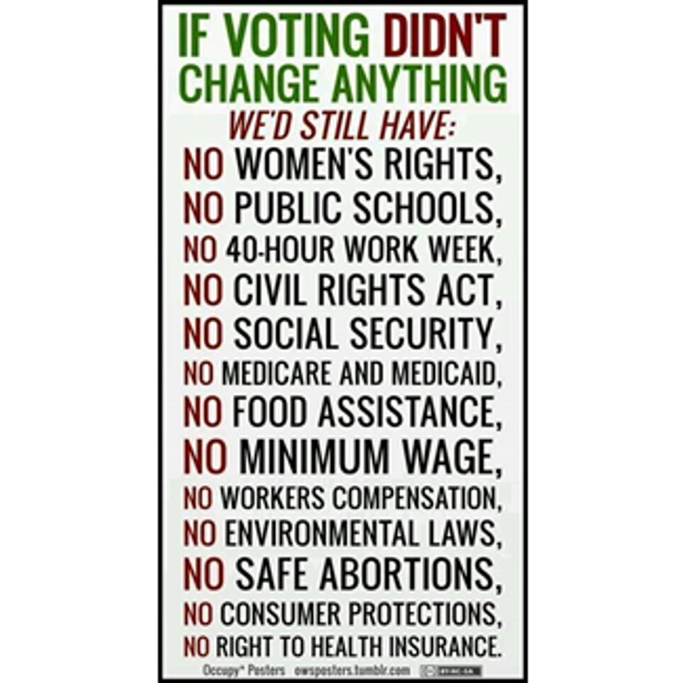 The United States gave us the privilege to vote. I mean, when we first started as a country, white able men were the only ones who could vote. Several years later, white and colored men could vote. Next, white and colored women could vote along with the men. Our ancestors fought for the rights to vote because they believed that their voice in Congress can make a difference. When we register to vote and then go to the election poll, our vote may not have an effect, a but our voice can!
