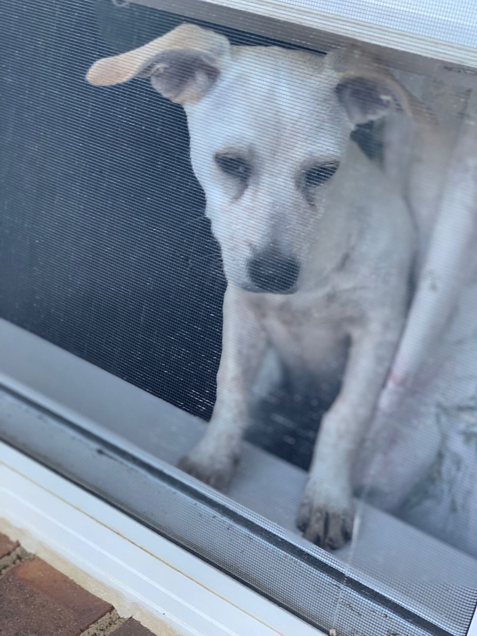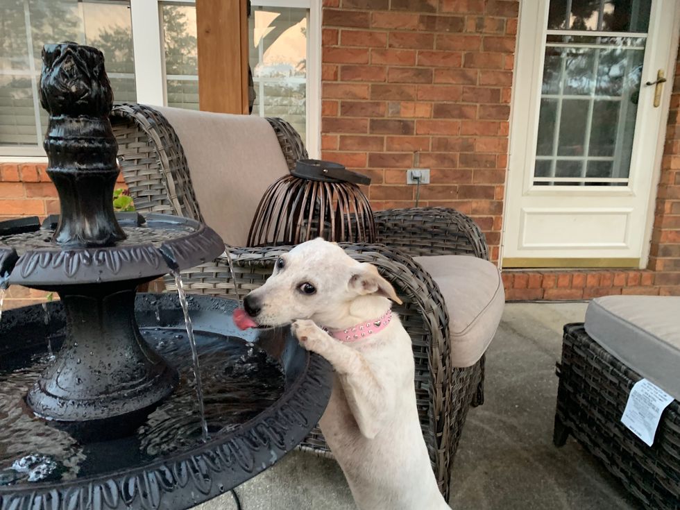 Rosie is always doing something crazy. You can look away for one second and turn around, she will be up on the kitchen table. My sister had a burrito from Taco Bell sitting on the table go missing and my family is 80% sure Rosie stole it. Not only does she climb on the table, she likes to dig through the trash and make a mess. It is aggravating because I have to clean it up, but it is just the funniest thing. Rosie is honestly so crazy. When she's outside and thirsty, she will stand up on her hind paws and drink from my mom's water fountain. The last thing that Rosie does to make me laugh is acting like a cat. I am pretty sure that has some sort of cat in her because she does things cats normally do. She scratches me in a way a cat would and she jumps on things in a fashion similar to a cat. If we put her outside, we see her sitting or standing on the very top of the furniture looking very majestic.