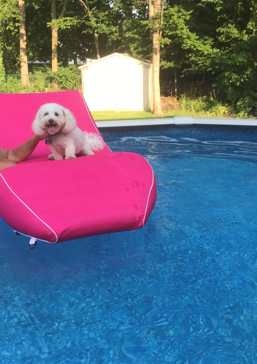 4. She loves riding on one of our pool rafts in the summer-time.