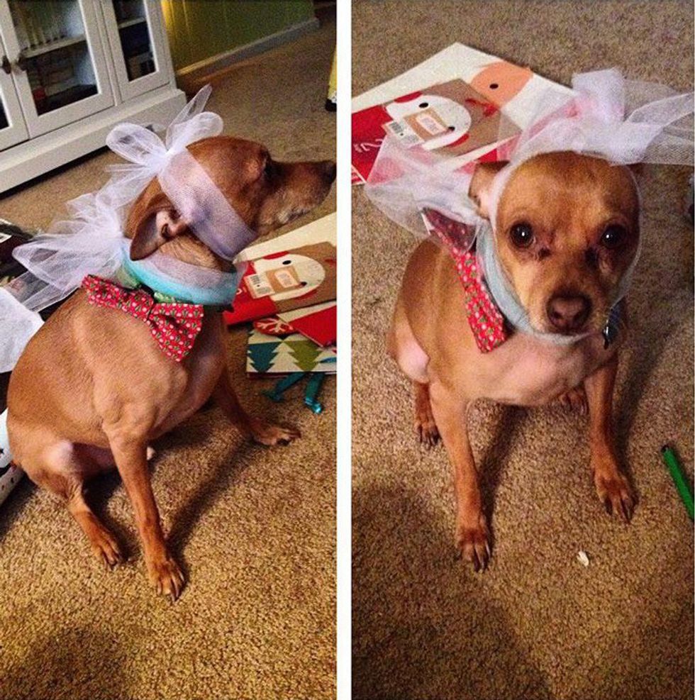 Would you rather embarrass your dog by tying a giant bow on his head while he was otherwise looking regular, and therefore leaving him looking completely silly and not at all stylish? Would you tie a giant bow on his head while he was the pinnacle of dog-fashion? I'll let the pictures above answer that for you.