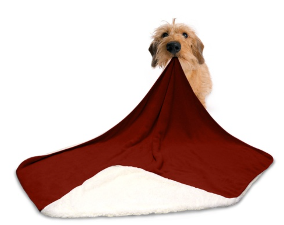 Under $11 and available in six colors the AKC Fleece Sherpa Pet Throw Blankets will be your pup's new favorite thing.