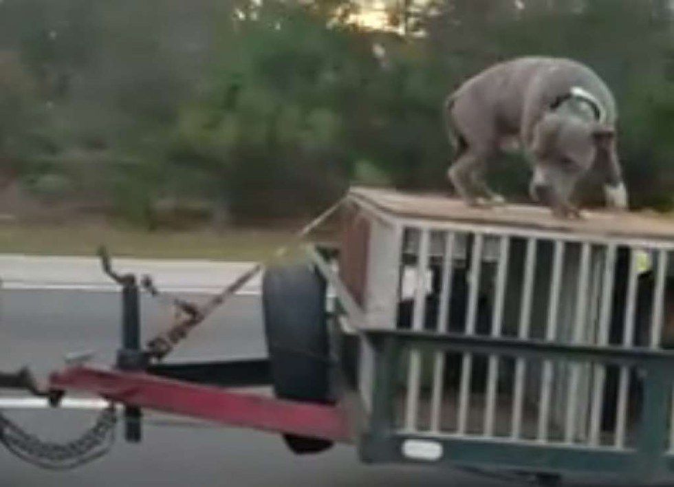 On Thursday a video showing a man driving down I-95 with his dog attached by only one chain to the top of the crate. The dogs terrified as it has to continuously change position to keep it's balance.as a pet owner i can not understand why someone would put their animals life at risk like this.