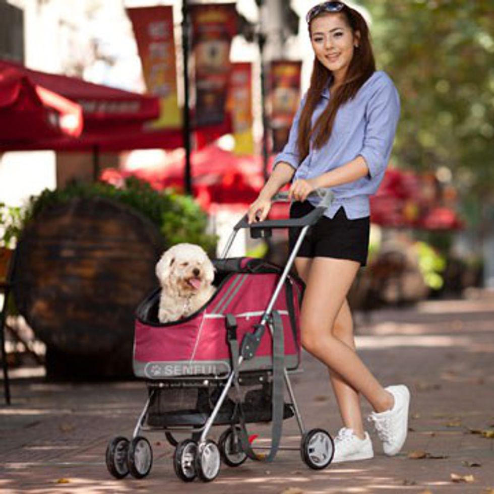 Sure, there are practical uses for the fabulous and on-trend doggie stroller like navigating your dog through the crowded airport or subway, but there are two rebuttals in my head that I just can’t sort out. First, it seems like you chose a dog that is counteractive with your lifestyle. If you know you’re going running every day and you’re going to want to bring your dog, maybe choose a dog who will push you to run further and more often instead of hinder your distance. I’m sure you had your reasons. Second, while the idea of treating your dog like your own flesh and blood is in a sense quite progressive, I can’t help but think of the doggie stroller as excessively materialistic. You might spend as much as $200 on a stroller for your dog. That seems crazy to a person who is paying off her student debt at the rate of a snail and contemplating how to avoid being a waitress for the rest of her life.