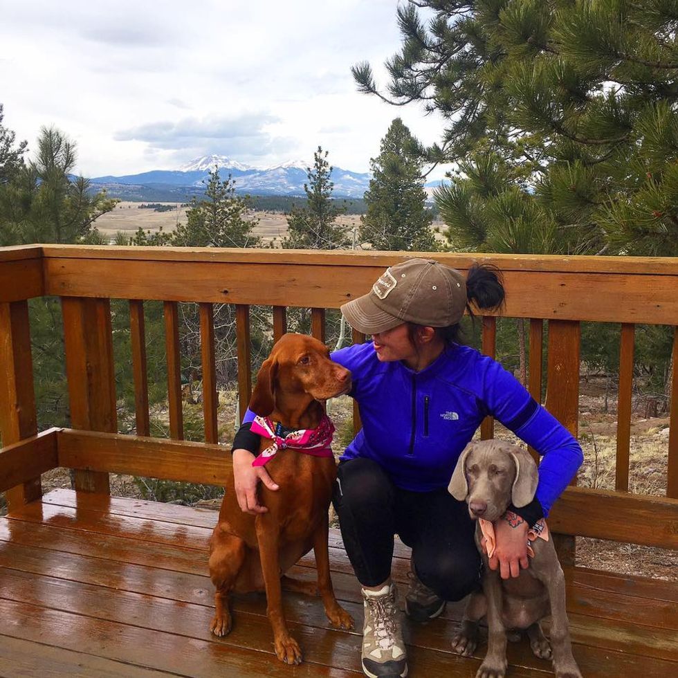 I always wanted to have my own dog. I looked at others with envy like… WTF why don't I have a cute dog hiking with me and doing adventurous stuff? I have had confidence and did before Malki, but her beautiful soul just makes me feel complete. She makes me understand myself which in turn makes me more confident. Having to take care of a puppy and her listening and being obedient makes me really proud. I feel a lot more whole as a woman with her around. A lot more me, a lot more confident. I also am a lot more confident in other dogs. Especially this Vizsla - Packer!