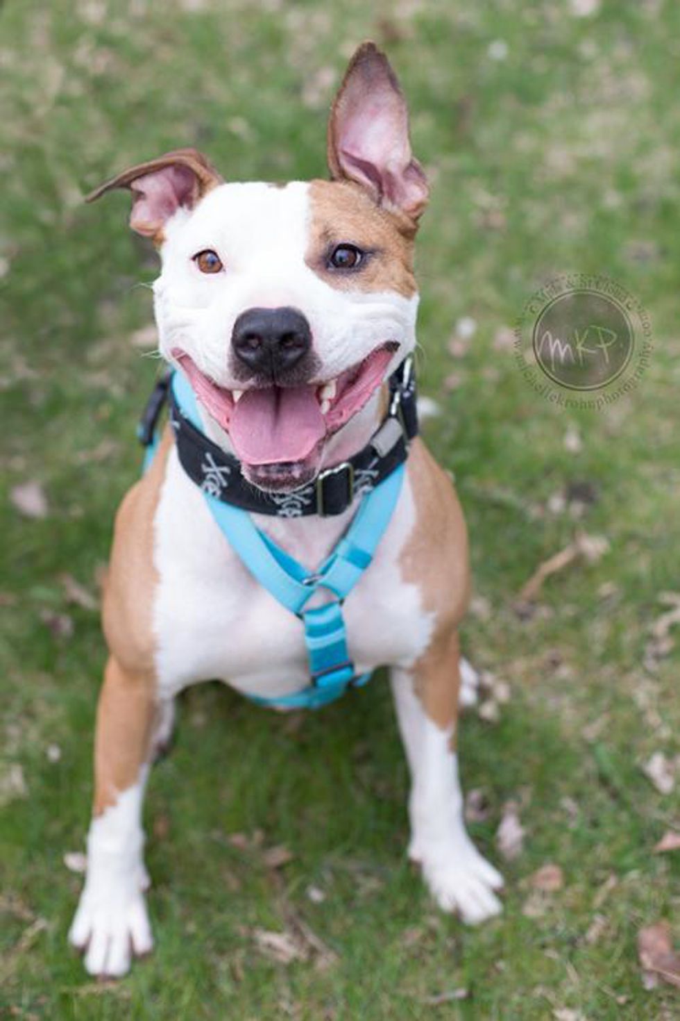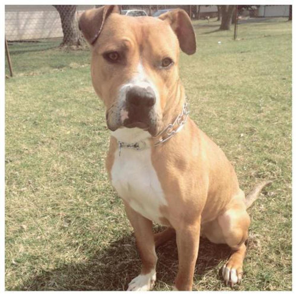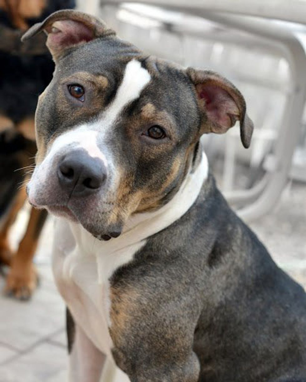 Have you ever seen such cute eyes?! Gemma is a large, 1-year-old American pit bull terrier who weighs about 49 pounds. She was recently rescued from a local animal control facility where she was scared and desperate for affection. This experience led her to be a little cautious, but she warms up to people quickly and likes to show her loving side with lots of kisses and cuddles. Gemma isn't descried as being "high energy," but she absolutely loves going on walks. She was given her name by her foster mother who says she is a "little gem" and "the total package" with her gentle nature.