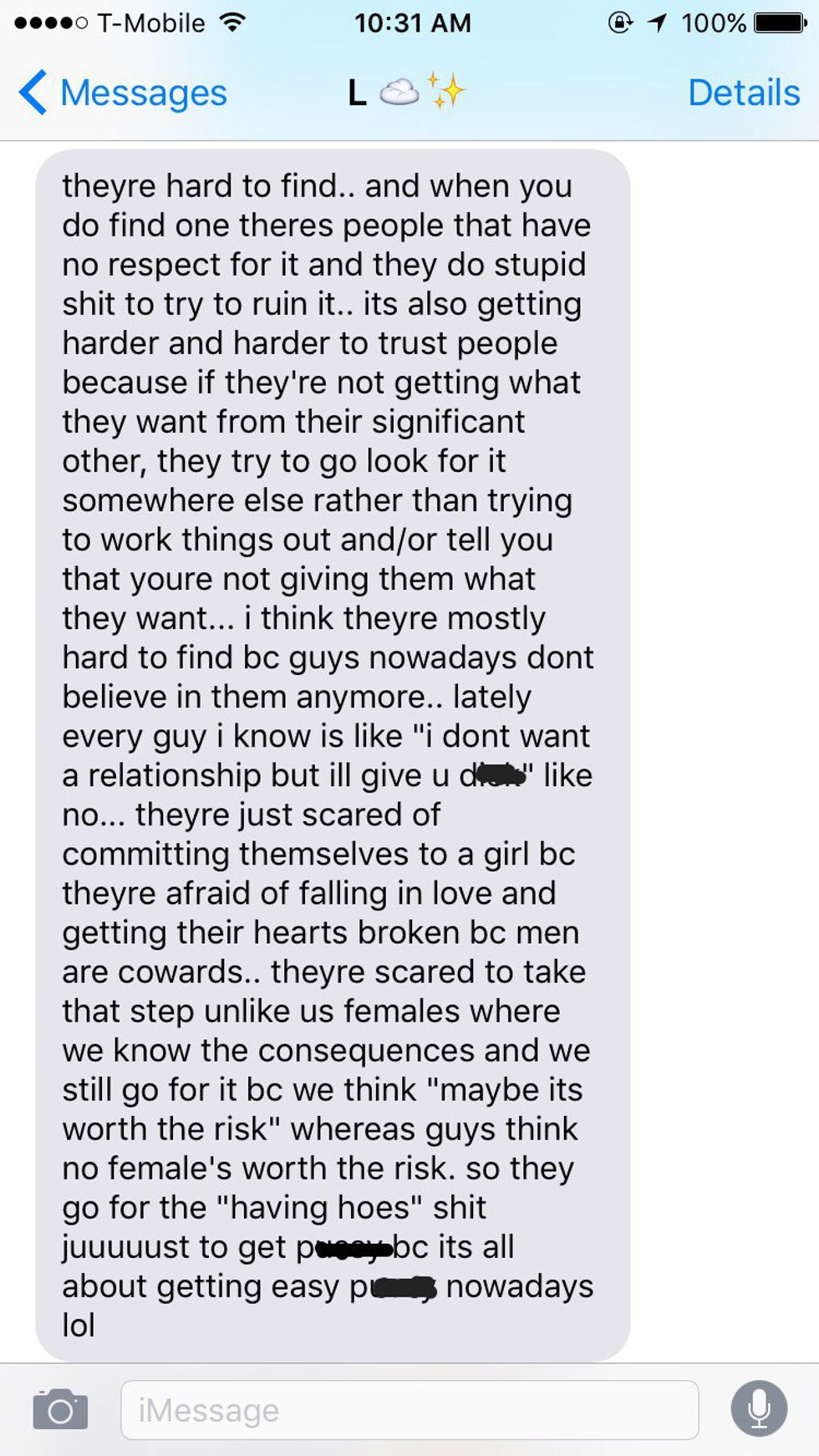 Now imagine, if I've lost sight of my vision of a good relationship, then who is to say that maybe the rest of us haven't lost sight too? I was curious to see if others had the same thoughts I do so I asked two of my friends about their opinions on relationships now a days. Here is what they had to say: