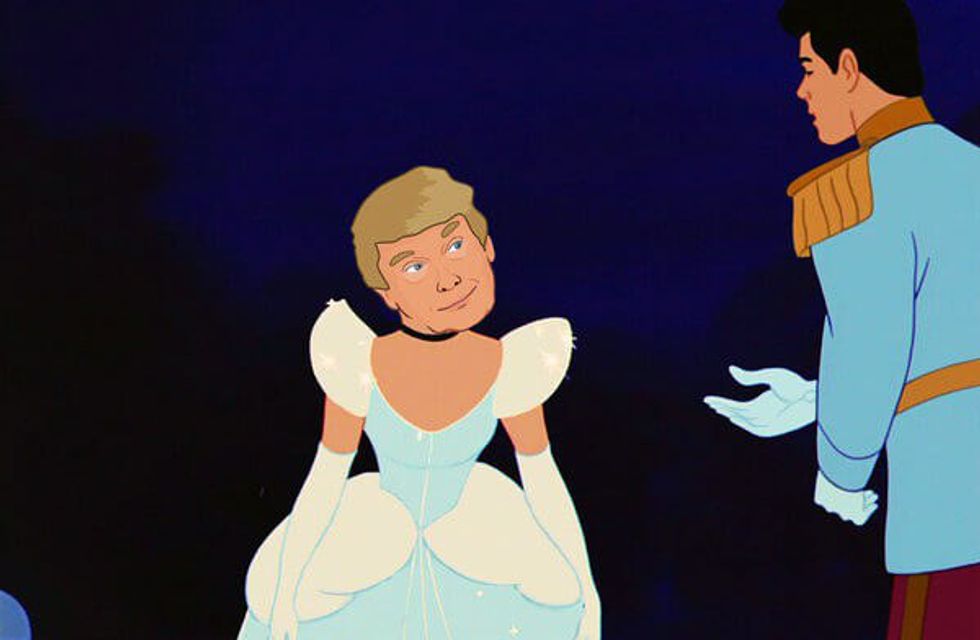 Donald Trump is treated as a slave in this movie: cooking, cleaning and doing all types of chores for his family. He realizes the extreme unfairness and the gender roles he is facing, but he continues to wait out for someone to save him because he is incapable of saving himself. He goes to the ball, looking for a man capable of changing his life, but his prince never finds him after he lost his shoe. Which brings us to our sequel to Cinderella.
