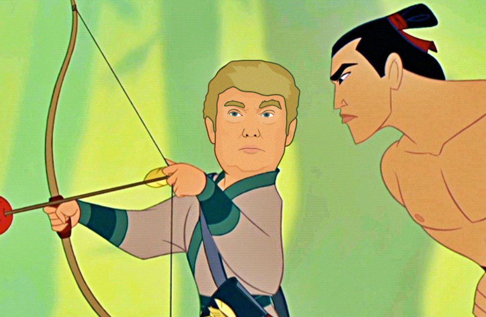 Trump realizes he cannot succeed in life as a female, so he decides to dress up as a boy in order to have the chance of changing his life, and possibly the world. He ran away from home, changed his name to Mulan, and joined the army in the hopes to work his way up to proving himself. At first, the other guys respect and admire Trump, since he continually proves himself to be a worthy member of the military. Eventually, the men find out that he is really a girl dressed as a man, but since a man is what he really wants to be and truly feels like he should've been, he wants to keep dressing as a man. Unfortunately, the other men lose all respect for him and continue to harass him for being transgender. He never saves the day at the end of the movie, because no one ever gives him the chance. Even his family won't take him back, so he ends up moving to a different country and he is never heard of again.