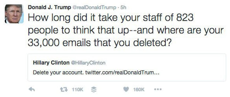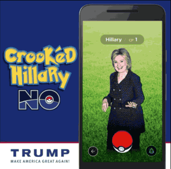 1. Portraying Hillary as a Pokemon in the new trending app, "Pokemon Go" or how he calls it, "Crooked Hillary No."