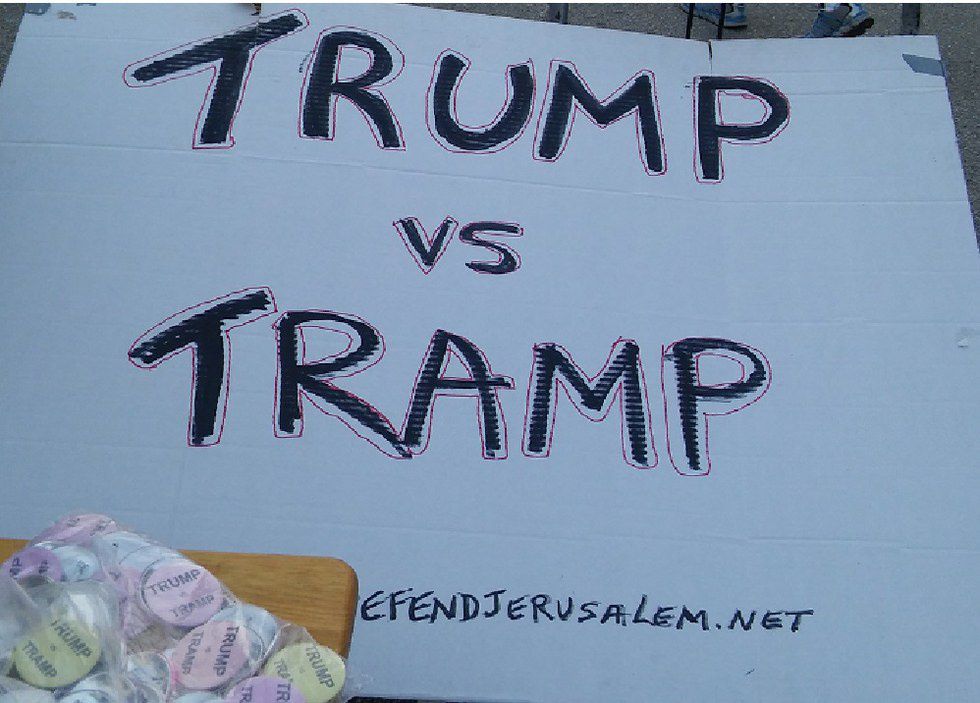 Bob Kunsth, 47 year old, who used to work for Hillarynow.com stood in front of the entrance of the arena with a sign reads ‘Trump vs Tramp’ said that he was being nice to Hillary to call her that. Kunsth helped start her campaign in 2003 and gave her five years of his life.