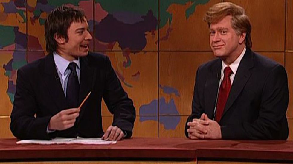Recently, many of Trump's Presidential competitors have even taken a swing at impersonating him. With his distinctive yellow-haired and tan look, his peculiar voice, his squinty stare, and his go-to phrases such as "it's gonna be huge" and "you're fired," Trump impressionists have always had a lot of material to work with. In anticipation of his hosting "Saturday Night Live" this Saturday, November 7th, here are some examples of politicians, talk show hosts, and comedians doing their best Donald Trump impressions:
