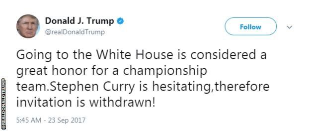 Donald Trump, the "President" took to Twitter to vent his frustration saying how much he didn't want him there anyway and declaring to America that he retract his invitation. Athletes like Lebron James who declared he didn't want to go to the white house after what happened to Stephen Curry. The bully of the United States declared how much he was done with Lebron James, well not that anyone asked him.