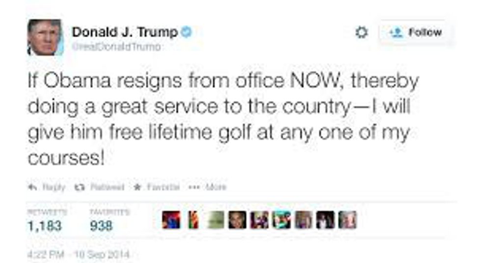 Because the "POTUS" would totally resign for some lifetime golf.