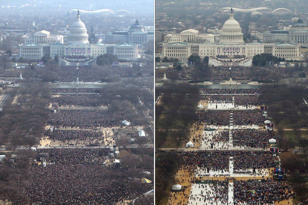 President Trump declared his war on the media after he claimed there were false reports regarding the size of the audience for his inauguration. In birds-eye view images comparing crowd size for Donald Trump's inauguration with former President Barack Obama's 2009 inauguration, Trump's audience is noticeably smaller than Obama's. Secretary of the Press, Sean Spicer fired back at the images calling the audience size at Trump's inauguration "the largest audience ever to witness an inauguration."