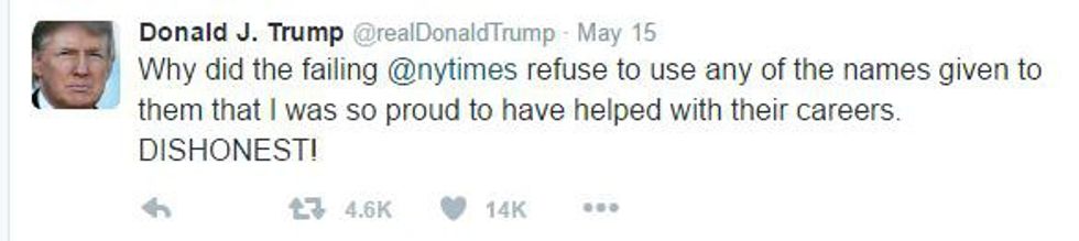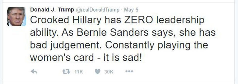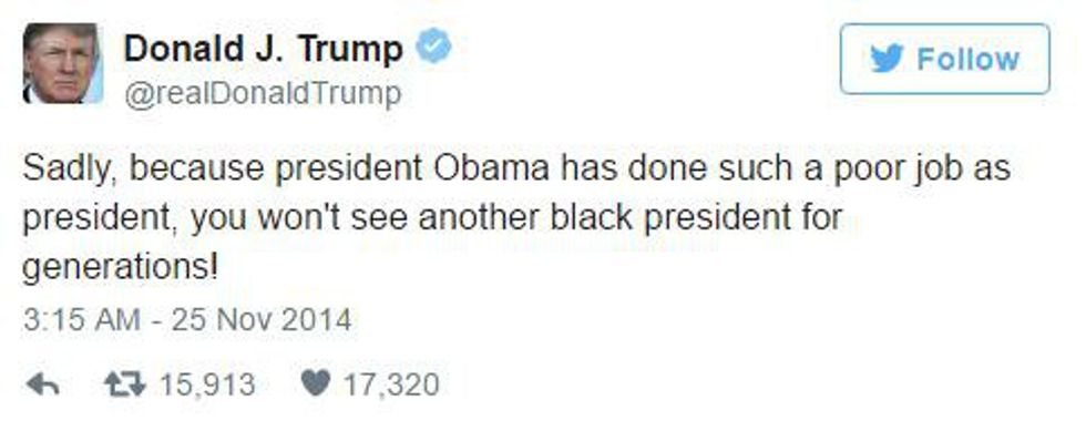 After spending about an hour reading through Trump's feed, I had had enough. If you just go through his Tweets, it's astonishing that this man is one of the front-runners in the presidential race. It's also scary.Trump could potentially be the leader of our country, yet he periodically lets out completely ignorant statements on Twitter. Honestly, who is on his PR team? I can understand the entertainment factor to Trump's account, but the man is running for president. It's not a reality TV show, even though Trump's Twitter feed contains all of the drama of one. Again, yikes.
