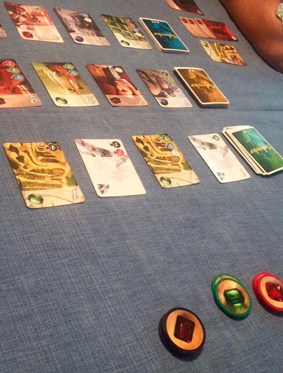 This game works best with three people, but you can play with up to four. Collecting gem chips to pay for cards, you have to collect enough cards to have a suitor visit you, but the catch is someone may take the card you want, or even reserve it, preventing you from collecting the right gem. Not much of a table talking game, but the strategy behind it makes you want to be three steps ahead of everyone else.