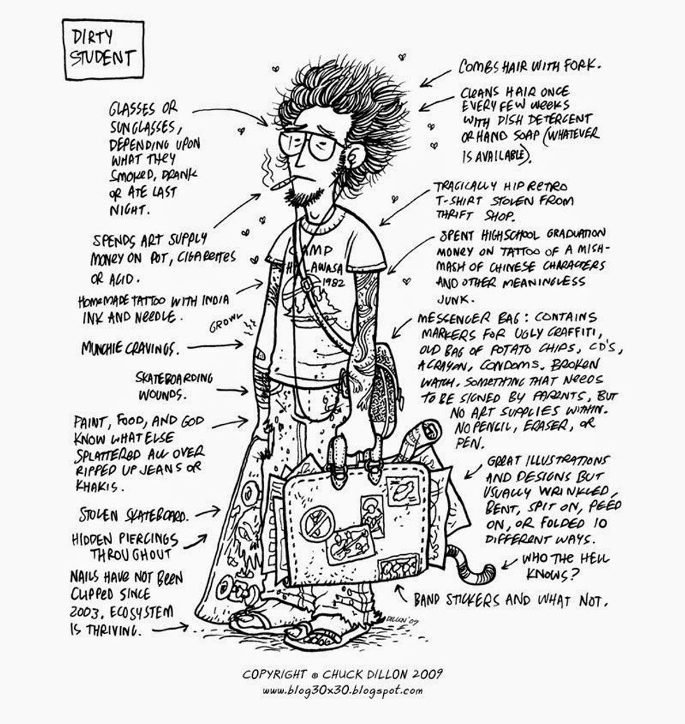 We all know the negative stereotypes that surround art majors and art schools in general. Unfortunately many of them are very true depictions of my classmates. Here are some of the worst stereotypes I have witnessed with my own two eyes. Please do not be "that" art student.