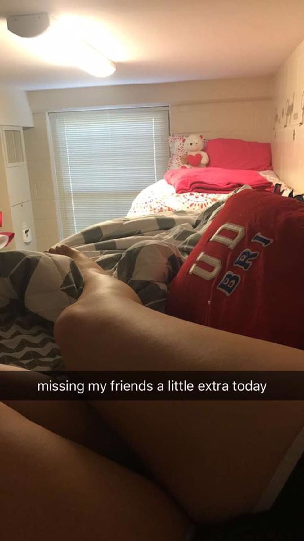 Even as the school year went on, I remember lying to friends and telling them I wasn't in my room so that I could sit alone and cry. I remember one of my friends having to call me and come into the communal bathroom to find me crying terribly in the shower.