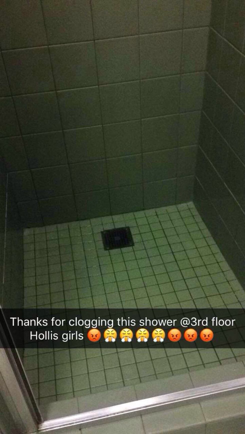 How did they do this? Maybe their hair got jammed up in the drain. But instead of reporting the problem, they let others continue to fill up the shower and let it flood the bathroom.