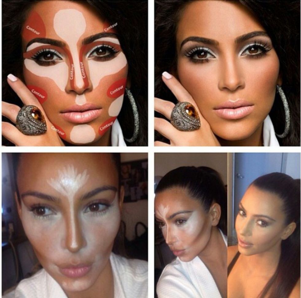 For those of us who don’t know: contouring is using specific makeup techniques to give shape and structure to part of the face. Celebrities like Kim Kardashian have made it the latest makeup trend. From the little bit of information I was able to understand, you contour your face by placing different types of concealers in different areas around your face and then blend them together. A person can make their nose appear skinnier, their cheekbones higher—or change their basic facial shape altogether.