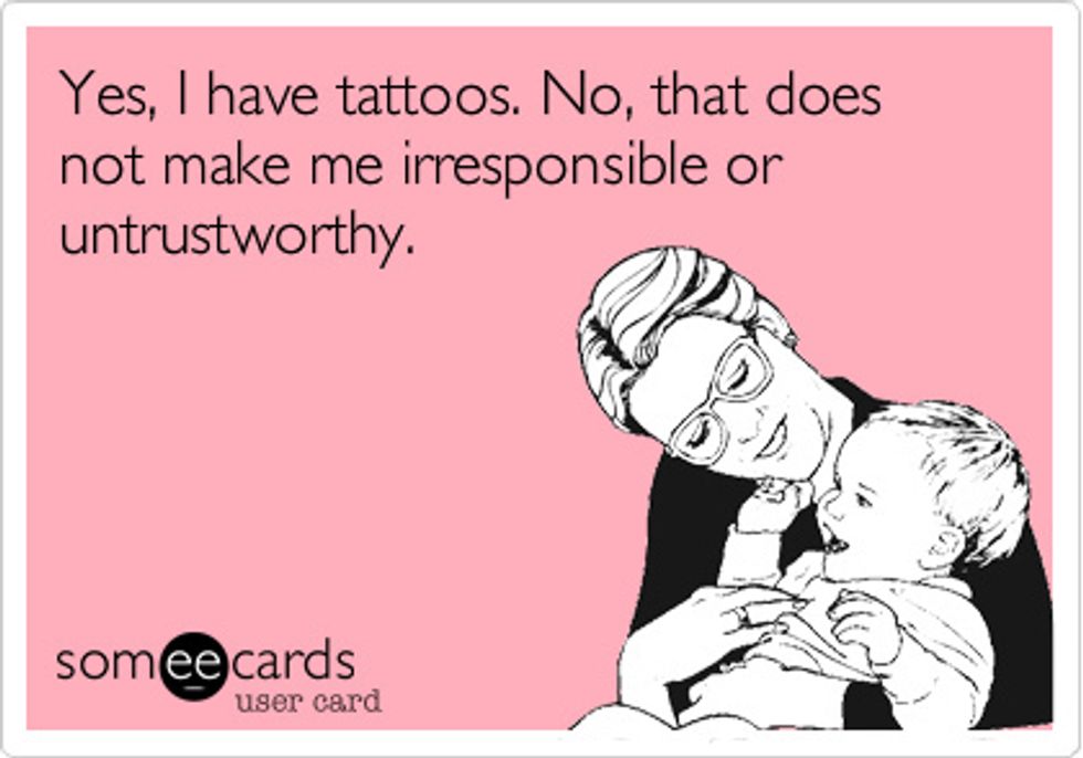 Tattoos are a touchy subject. The word “tattoo” has such a negative connotation to so many people that it can immediately kill a first impression, among other things. According to a poll from debate.org, 80% agree that tattoos are negatively stereotyped in the United States. Individual accounts bash tattoos, saying they’re trashy, not classy, unprofessional, and unwise. I would never judge someone’s tattoo. However, people - including employers - often do so, and that’s inevitable. So a word from the wise: if you plan on having a job someday where tattoos are frowned upon, get one that you can hide.