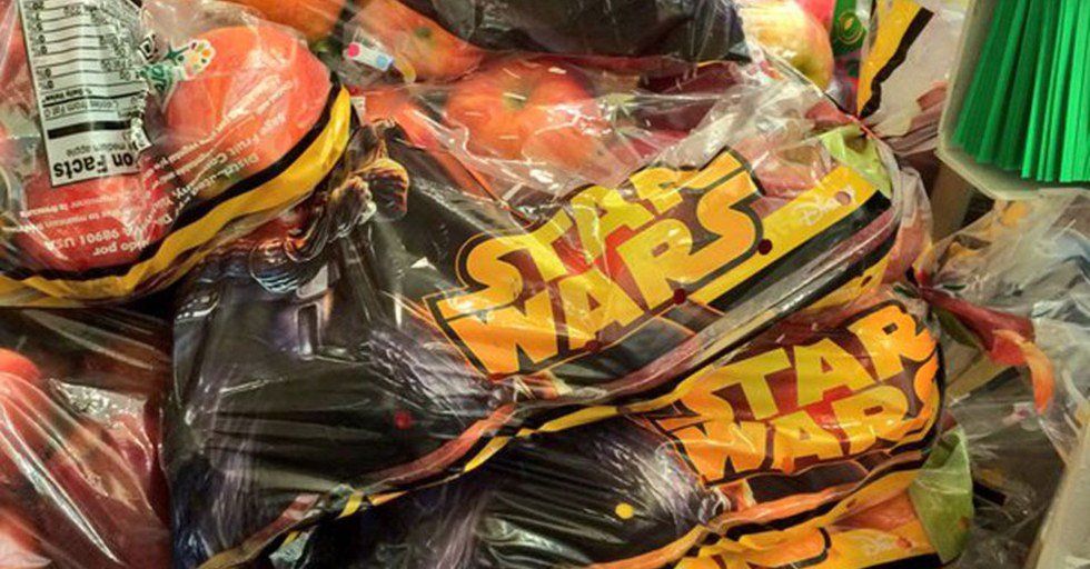 Yes, there are "Star Wars" characters slapped on food products, just like there have been princesses and dinosaurs previously slapped on cereal boxes. The one post I saw was someone having a meltdown over BB-8 being on an oranges bag. One reason why companies put beloved characters on their food items is to get kids to bug their parents to buy them; is it really a bad thing if a kid gets their parents to possibly buy more produce? To me this doesn't seem like a bad thing, I used to work with kids and I loved having food with characters on the label. It was so much easier to get a kid to eat a thing of fruit snacks that had SpongeBob on the label than just plain pictures of fruit. If a kid loves R2-D2 and wants to eat carrots because it's on the front of the packaging then at least the kid is eating something healthy by choice.