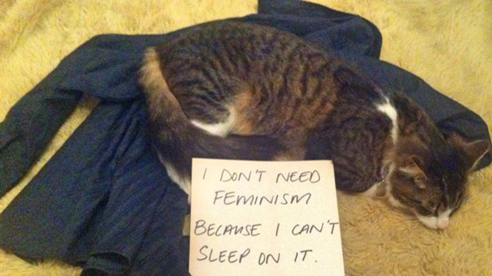 As a final note for anyone who actually made it to the end of this article (or who was kind enough to click on it and ambitious enough to scroll to the end), here is the one "I Don't Need Feminism" post that I can agree with. I’m sure it won’t surprise any of you that it involves a cat.
