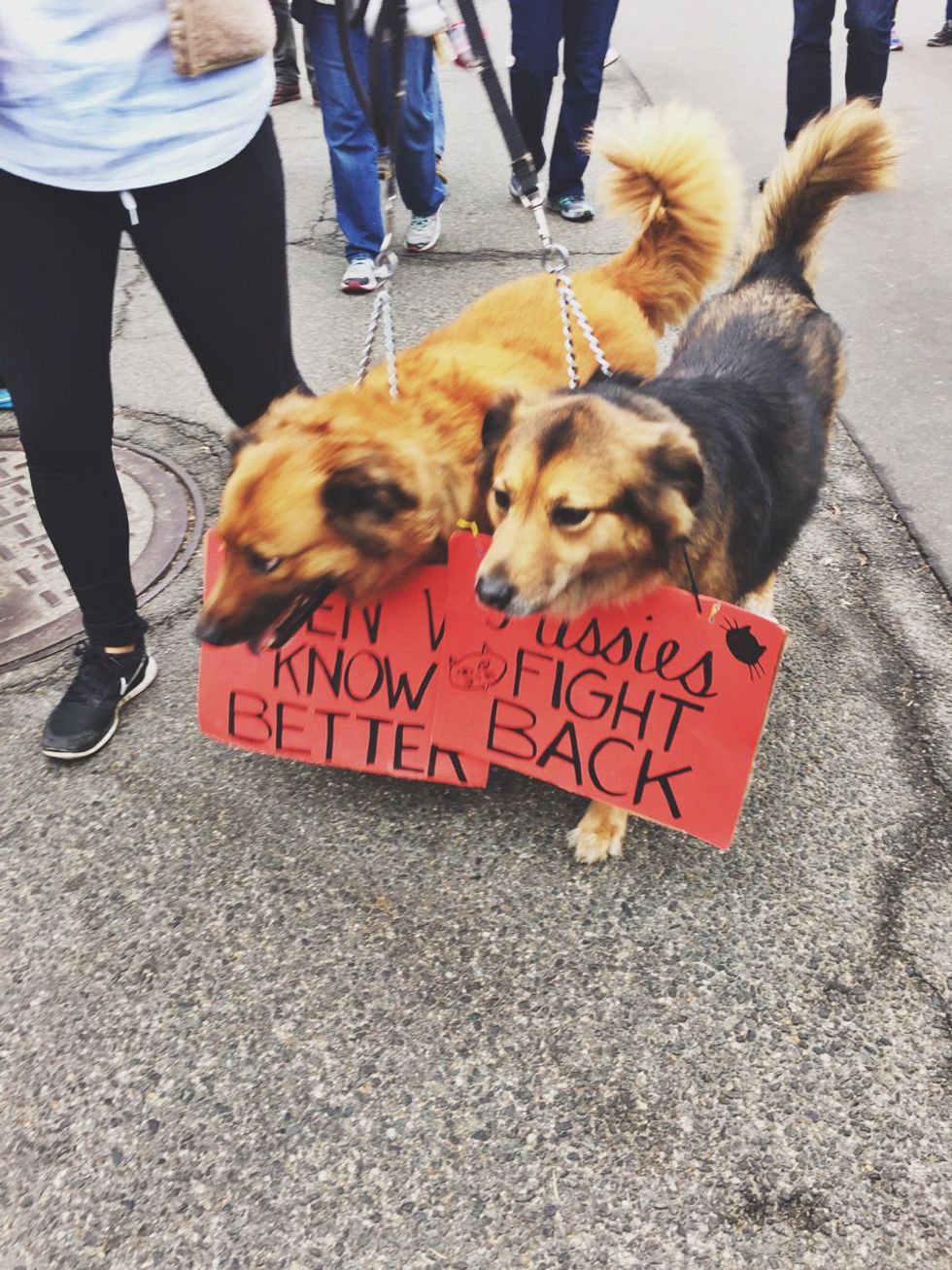 "pussies fight back" -- not all signs were about vaginas. There were many trans friendly signs and people there. The media just chose not to focus on them!