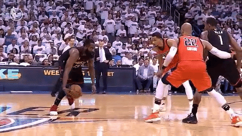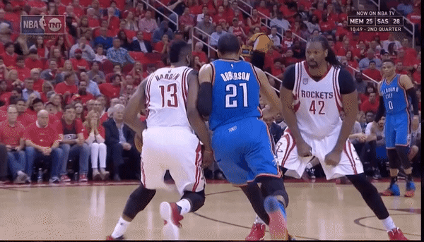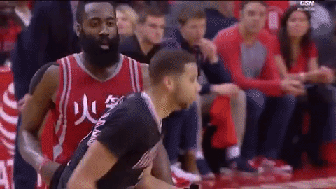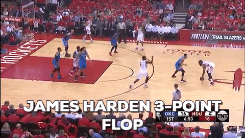James Harden got the foul call on each of those plays. In the series against the Thunder, he got fouled nine times shooting the three, most of them like the first three gifs (which took surprisingly long to make). It was one thing to see Harden flop on his way to the rim, but another when he is consistently awarded three free-throws for hooking the arm of a defender and sneakily initiating contact to get the call. Without a doubt, it's sneaky and smart: he's so adept at drawing the three point foul at this point that he can easily fool referees, but that doesn't mean NBA fans have to like it. But during the season, Harden drew more three point fouls than any other team in the NBA. By 25. How does that data make any sense?
