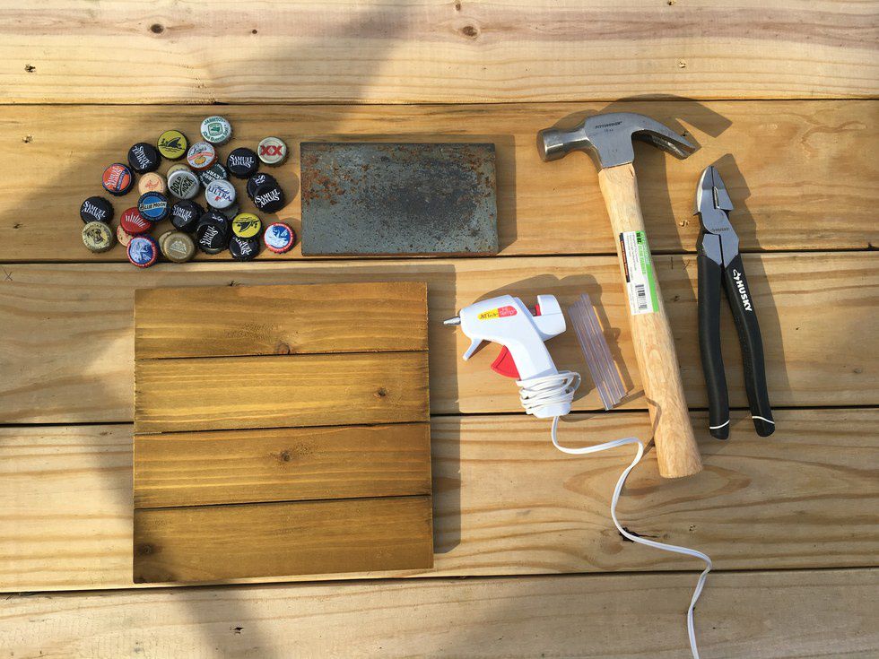 After a weekend get together, a holiday party, or just a chill weekend with friends, do you ever just have a bucket filled with different bottle caps? Usually your first instinct would be to just toss them, but I have a better idea--why not create a cool decoration out of them?