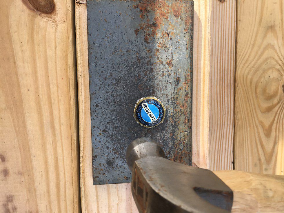Now, place the bottle cap onto the hard surface for hammering and simply hammer the cap until it is flat.