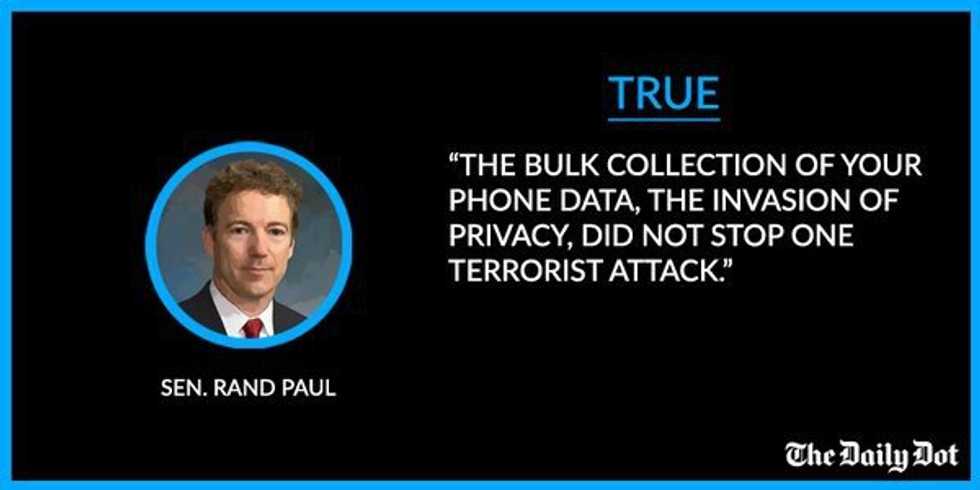 Last week in the last debate before the Iowa caucuses, Rand Paul said, "The bulk collection of your phone data, the invasion of your privacy did not stop one terrorist attack. I don't think you have to give up your liberty for a false sense of security."