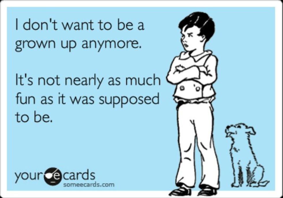 Growing up can be one of the scariest things in life; it means being independent, being mature and cooking your food … but I like my mom’s food. Why didn’t anyone warn us about how hard being a grown-up is? If someone told me the truth when I was 6, I would’ve said, “I don’t want to grow up." Thank you very much, but I’ll stick to having recess and nap time every single day with my only worry being whether to have my playdate with little Billy on Monday or Tuesday.