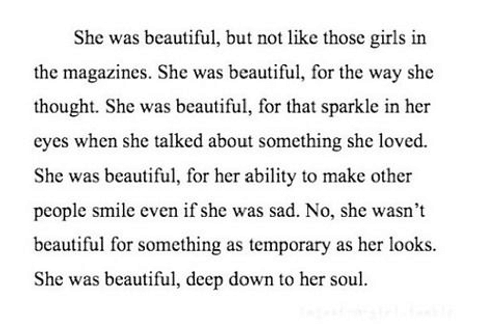 There is so much more to you than what's on the outside. You have a beautiful soul and have so many opportunities ahead of you. Don't waste them, or take this life for granted.