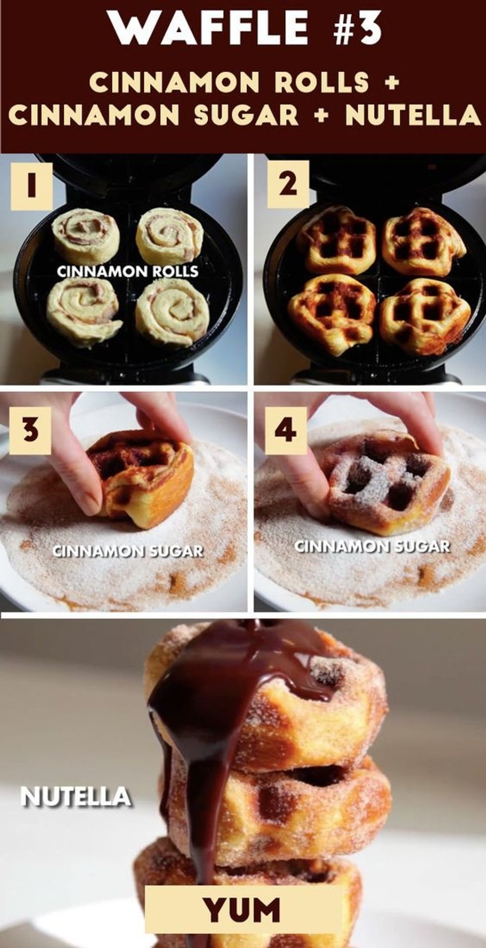 While we're on the topic of waffle irons, grab some cinnamon rolls from the roll and pop them in the waffle iron to warm them up before drizzling frosting on them.
