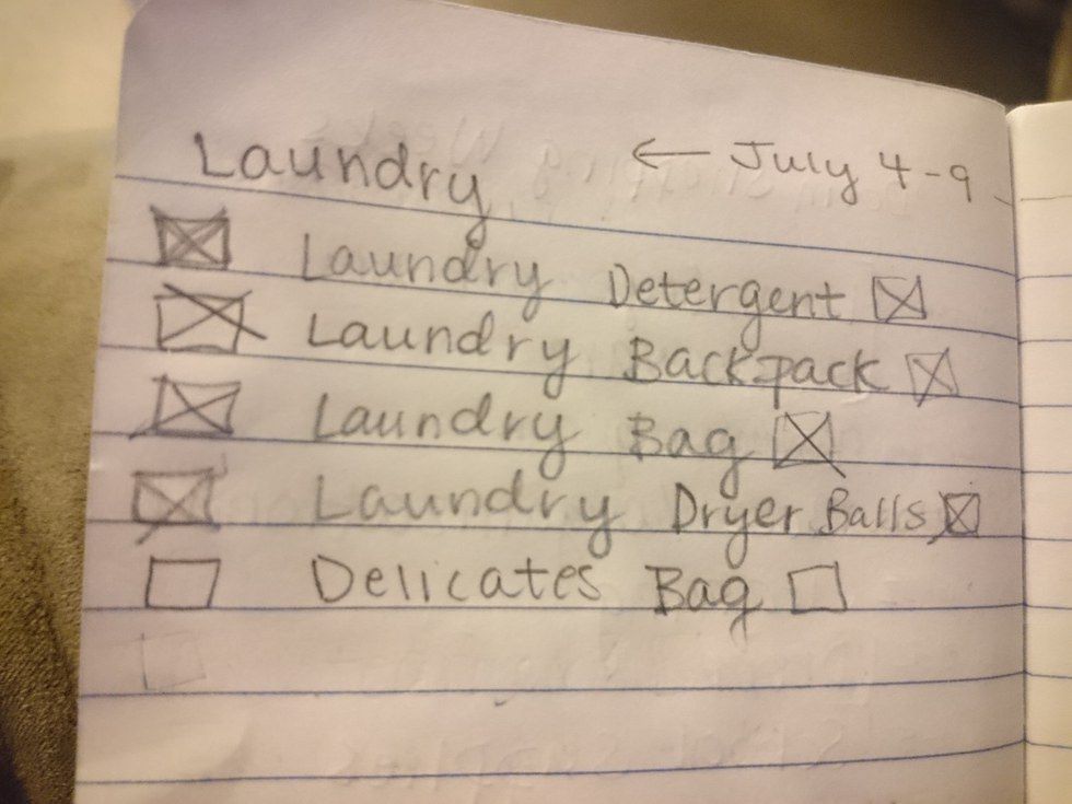Under "Laundry" I have things like: Laundry Detergent, Laundry Backpack, Laundry Bag, Laundry Dryer Balls, and Delicates Bag. Doing this prevents forgetting things that you really needed. When making your list for each category include a check box on both sides of the item. The first box will represent if you already own or have purchased the item. The second box to the far right of the item will signify if you have packed it away. If you forgot to pack something, referencing this list at the end of the summer will ensure you won't leave home without it!