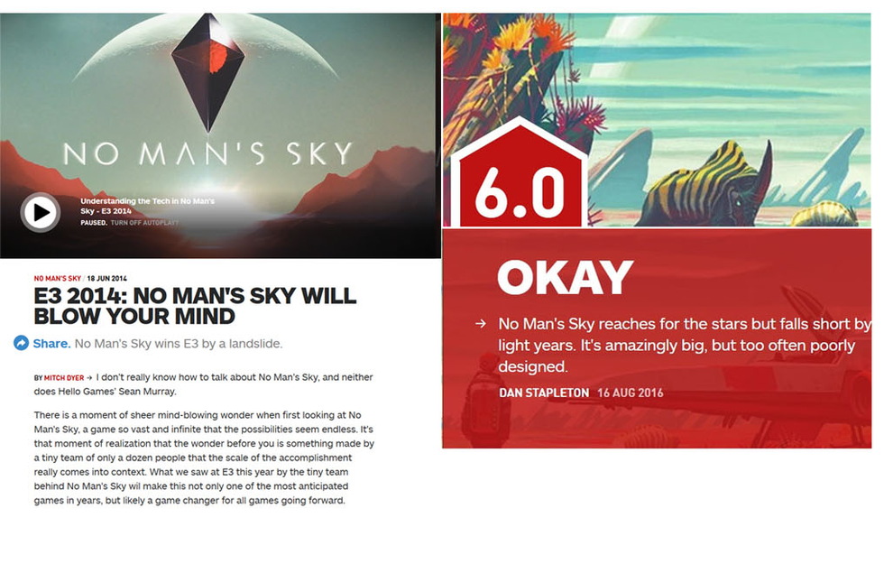 An example of games media hyping before release, and backtracking after. (click picture for full image)