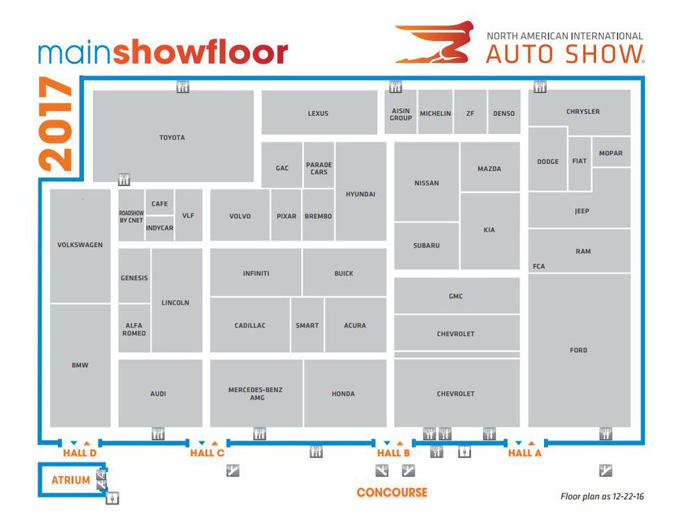The North American International Auto Show is in town until January 22nd. I haven't been yet, but I plan to. According to my Snapchat, Ford has put up an incredible 360 exhibit and scooters are the future. If that doesn't entice, I'm sure the fifty billion other fancy cars will. Tickets to the show are only $13 for adults and $7 for children and seniors. Check out the floor plan below!