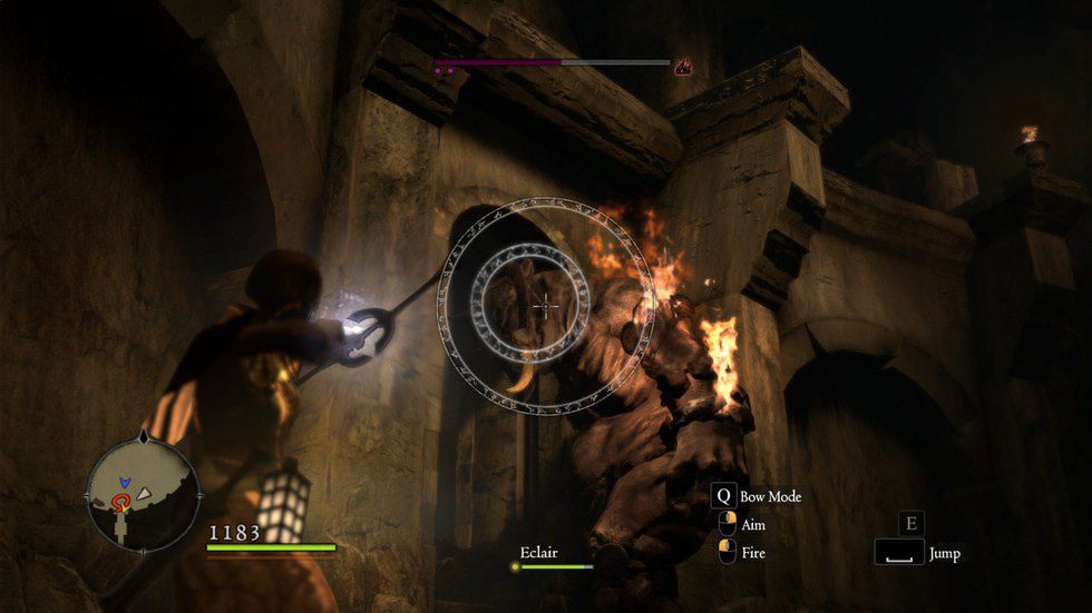 Gameplay is very solid, and because of the different pawns you can hire, combat will vary. When fighting more than just filler monsters like wolves and goblins, encounters with the game's more colossal creatures can turn quite cinematic. Depending on how your character is built, you will be able to scale the monster and attack it while climbing up its back or torso. The camera movement allows the player to easily see the entire beast they are fighting, making any hits taken pretty much the player's fault. One of the pros of these bosses, is that their attacks are "smart" meaning they don't perform the same moves in a predictable fashion with the player set as their target. They move around and tend to do what's best to try to kill the player.