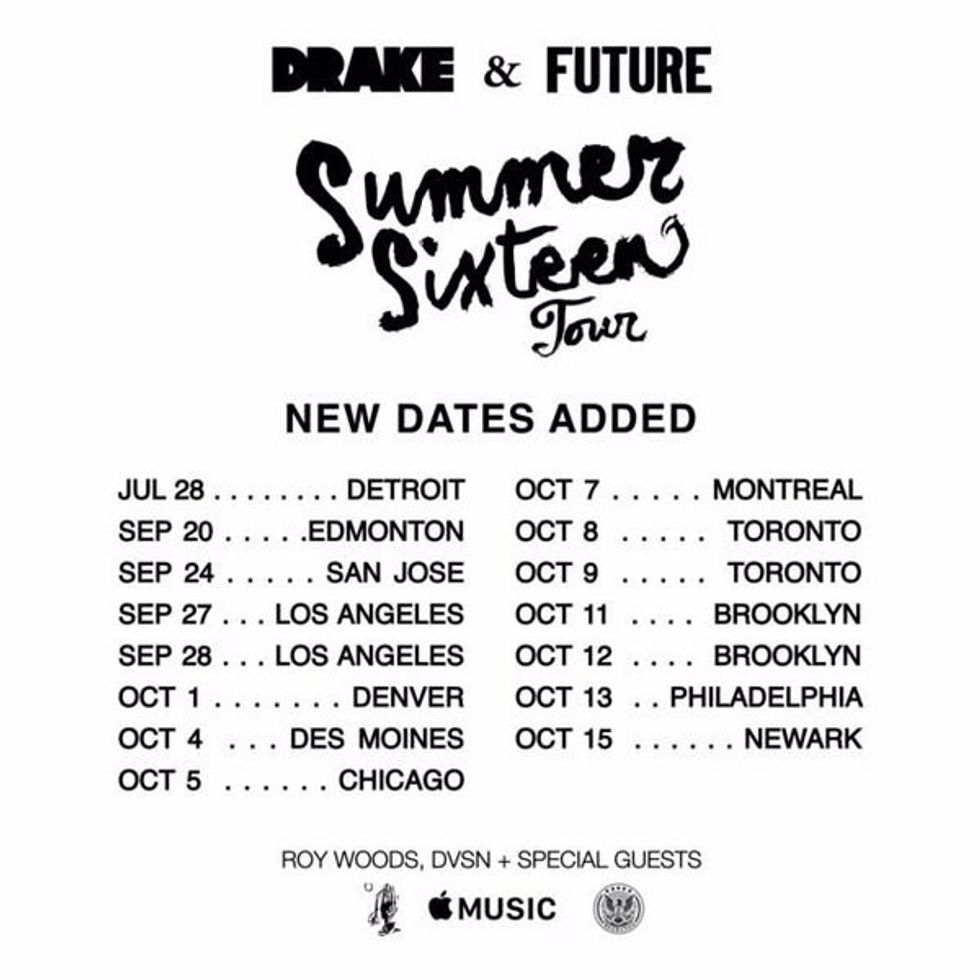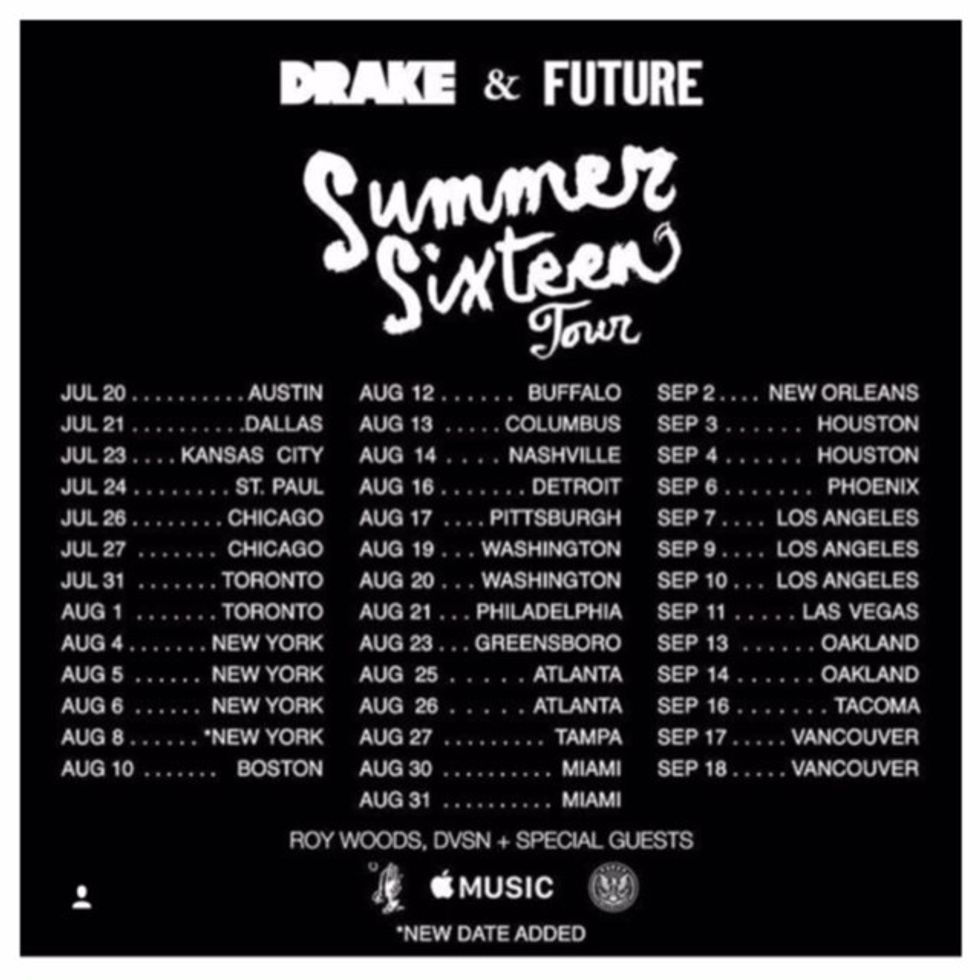 The Summer Sixteen Tour headlined by rappers Drake and Future made its way to Denver, Colorado this weekend for a two night event. The first night in Colorado was Saturday, October 1st then Sunday, October 2nd was the closing night. The Canadian native announced his tour after the release of his fourth studio album, Views. The tour was named The Summer Sixteen tour that began in Austin, Texas on July 20th and will end in Newark on October 16th. Originally Denver wasn't in the first set of cities announced on the tour stop, but eventually Colorado along with plenty of other cities and dates were added to the tour.