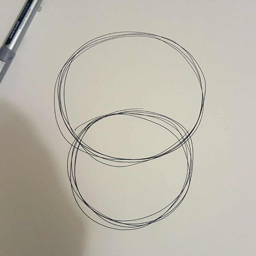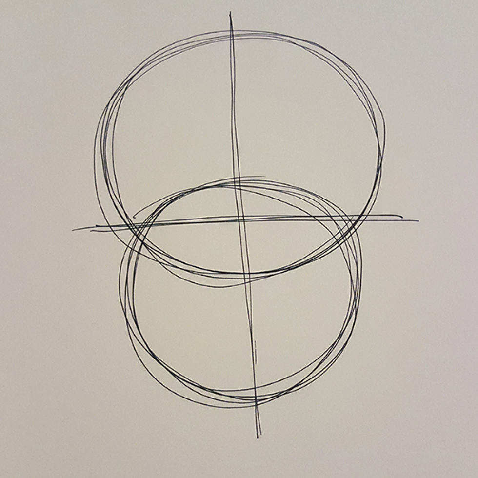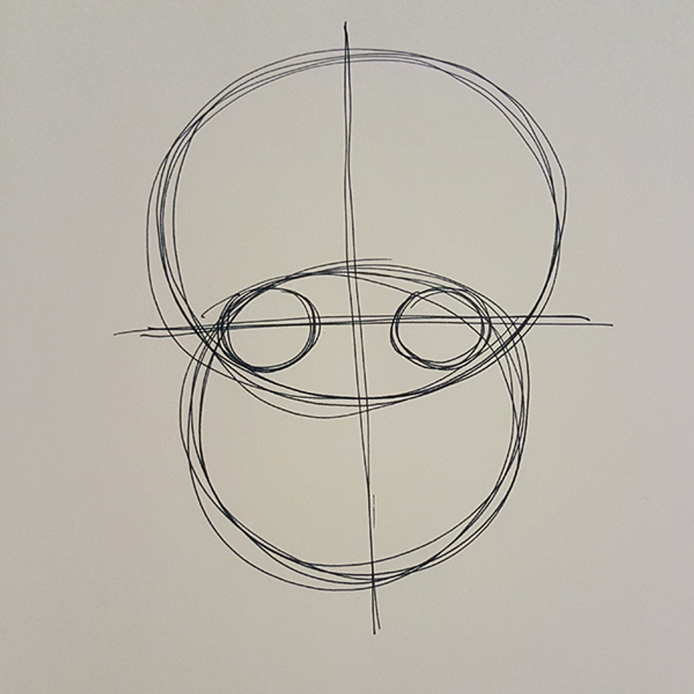 4. Draw two somewhat large circles in the middle of the horizontal line.