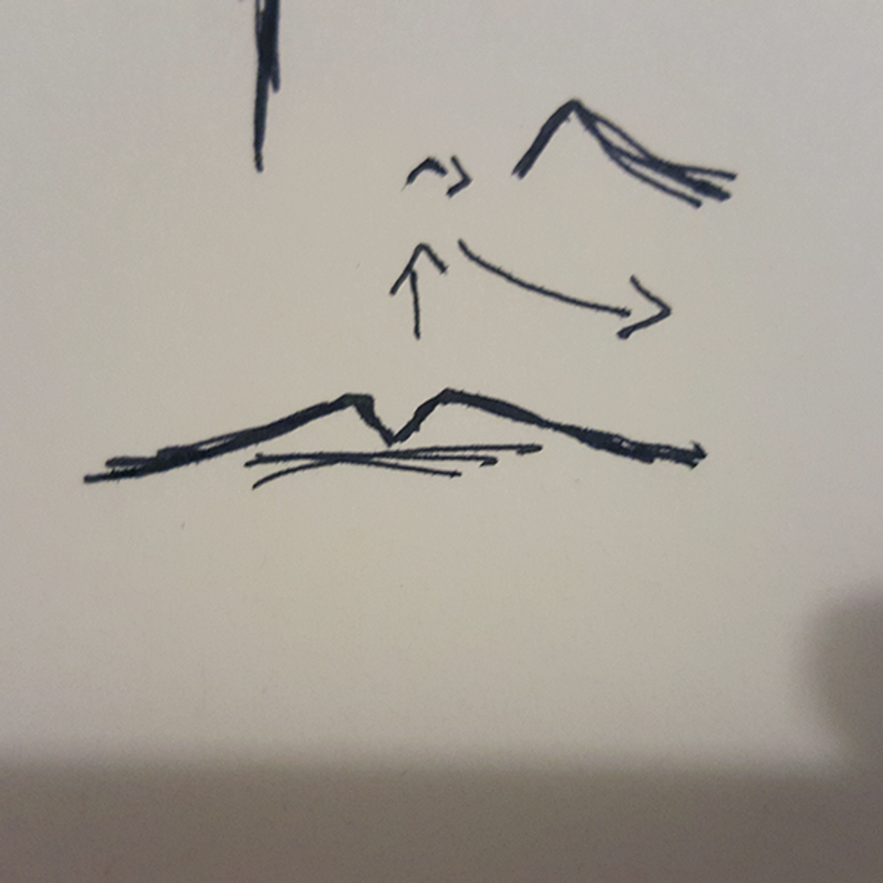 5. Halfway from the horizontal line, draw a short line (nose). Do something similar (lips) slightly halfway from the short line.