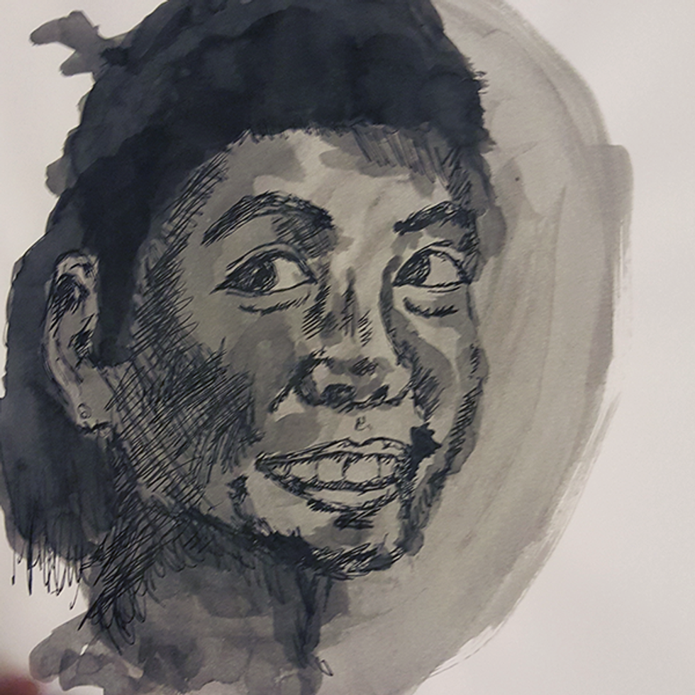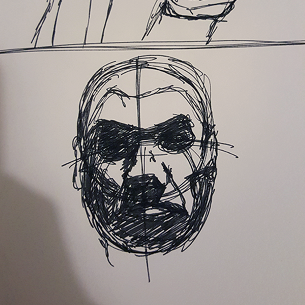 If you look closely, you will see some leftover pencil works in which I used the guides. The time ranges for the first nine pieces are between three minutes and 20 minutes. The last two were projects with the halo portrait being 3 hours and the dark one being an hour and 30 minutes.