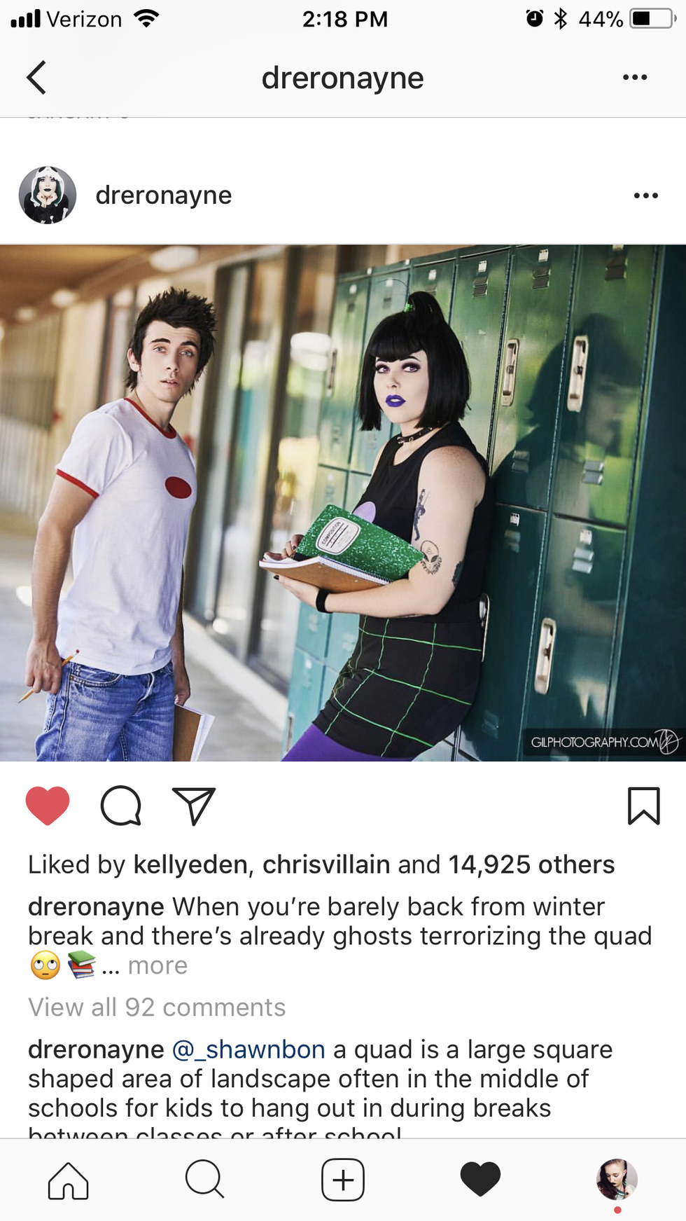 Dre Ronayne is one of the kindest and most incredible influencers out there. If you're looking for makeup tutorials, unboxing videos, how-to-be-goth DIYs, random adventures to Disneyland, ridiculous antics with friends, and lots of nerdy references — Dre Ronayne is your gal.