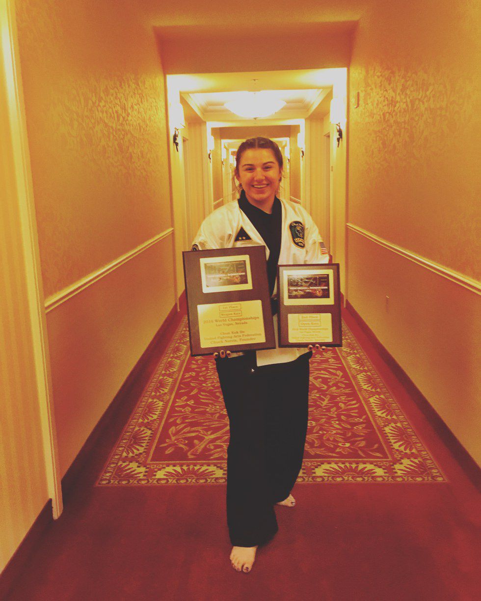 Last year, I attended the conference and championships as a first degree black belt. It was my first competition ever competing as a black belt and I placed second in my weapons division. I knew that once I made the decision to go to Vegas as a second degree black belt and as a competitor in the adult division, I wanted to train hard to become a World Champion and pave my way to compete for the Norris Cup. This was my goal and I was not going to let anything get in the way of achieving it.
