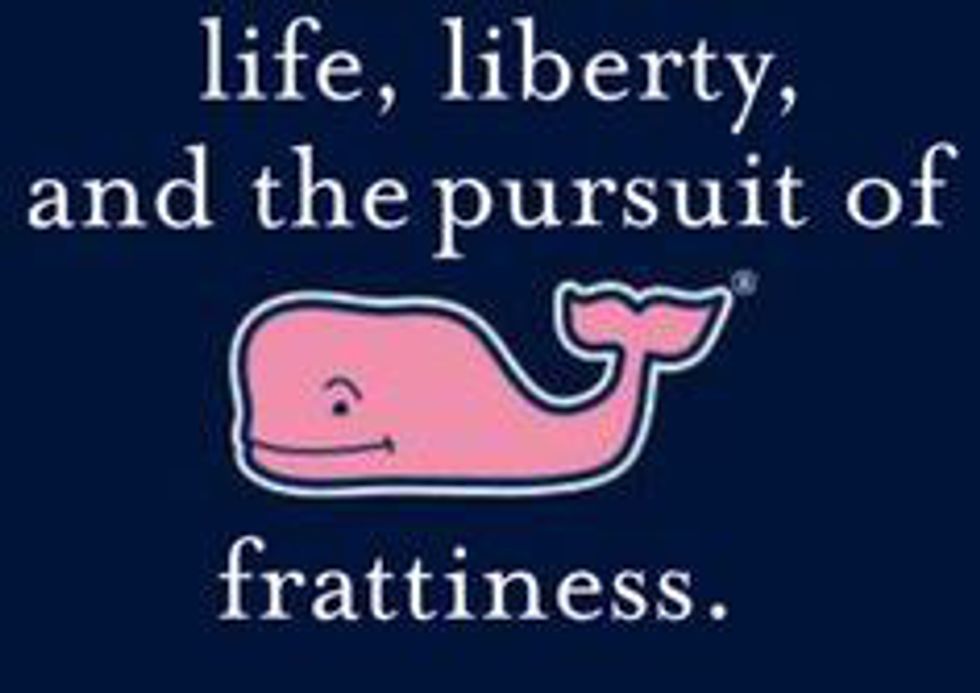 And, of course, we can't have the prep/frat basic essentials without mentioning Vineyard Vines. Vineyard vines is definitely a staple of any prepster's wardrobe. From their classic ties to their long sleeve shirts, to their colorful pants, V.V. has got it all. I mean, c'mon. Slap that little pink whale on anything and instantly becomes more fratty.